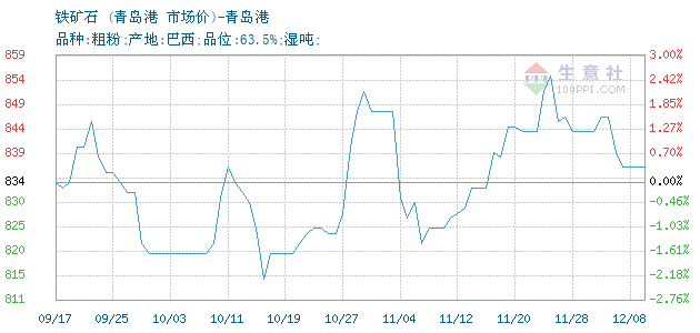 铁矿石(巴) • 青岛港报价图