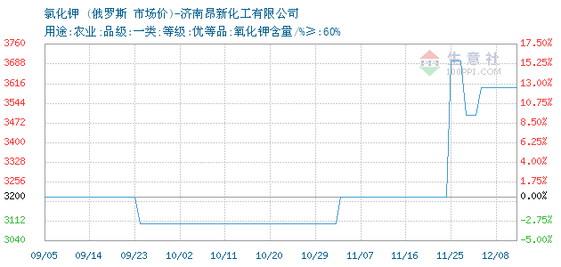 | 用途:农业;品级:一类;等级:优等品;氧化钾含量/%≥:60% 附加说明: |