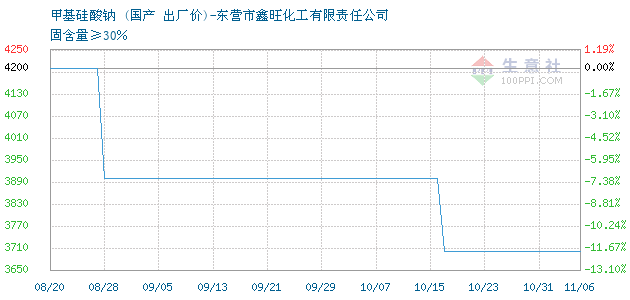| 固含量≥30% 附加说明:东营市鑫旺化工,甲基硅酸钠报价4800元/吨。化工产品价格变动频繁,详情欢迎来电咨询。 |