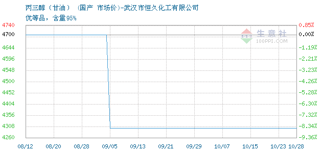 | 优等品,含量95% 附加说明:【 大宗原料价格波动较快,价格随行就市,实单致电:157-9198-4079 】丙三醇(甘油) 用于制备食品、药物、化妆品和烟雾剂等。 |