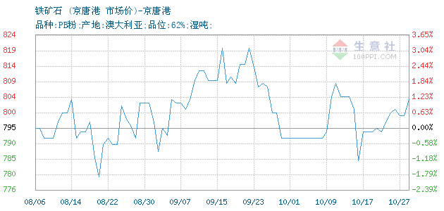 | 属性规格 | 品种:PB粉;产地:澳大利亚;品位:62%;湿吨; | ||