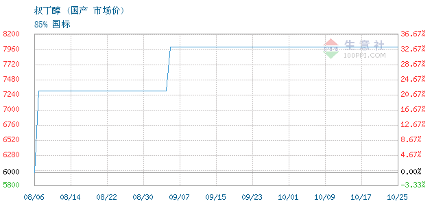 | 85% 国标 附加说明:【 大宗原料价格波动较快,价格随行就市,实单致电:157-9198-4079 】叔丁醇 主要用作工业溶剂和有机合成中。 |