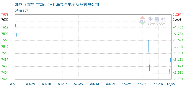 | 热法85% 附加说明:净水含税出库价。由于化工产品行情走势变化较快,价格随行就市,实单采购请以电话询价为准。 |