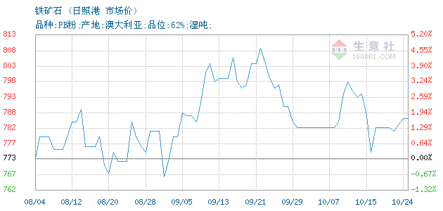 | 属性规格 | 品种:PB粉;产地:澳大利亚;品位:62%;湿吨; | ||