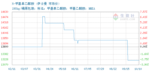 | 属性规格 | 190kg/桶原包装,别名:甲基单乙醇胺,甲基乙醇胺,MMEA | ||