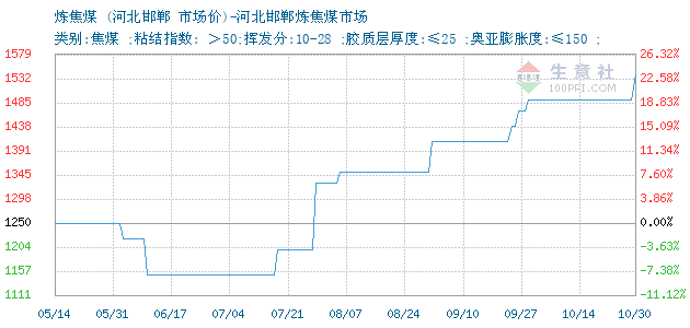 炼焦煤(焦煤) • 河北邯郸炼焦煤市场报价图