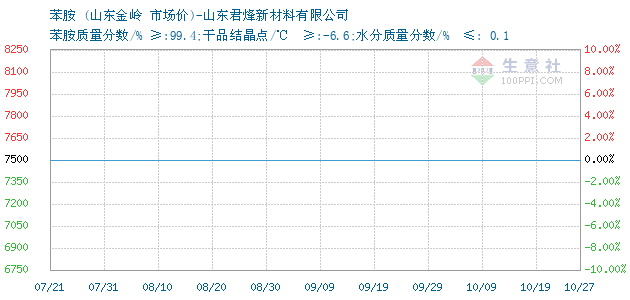 | 苯胺质量分数/% ≥:99.4;干品结晶点/℃ ≥:-6.6;水分质量分数/% ≤: 0.1 附加说明: |
