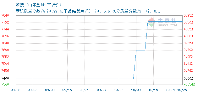 | 苯胺质量分数/% ≥:99.4;干品结晶点/℃ ≥:-6.6;水分质量分数/% ≤: 0.1 附加说明: |