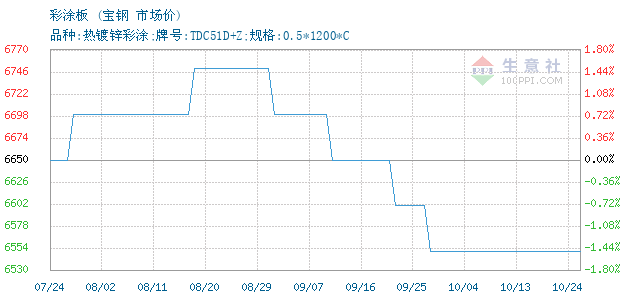 | 品种:热镀锌彩涂;牌号:TDC51D+Z;规格:0.5*1200*C 附加说明: |