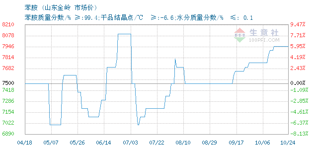 | 苯胺质量分数/% ≥:99.4;干品结晶点/℃ ≥:-6.6;水分质量分数/% ≤: 0.1 附加说明: |