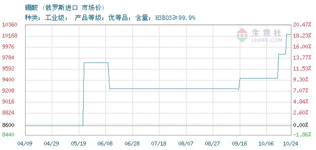 | 种类:工业级; 产品等级:优等品;含量:H3BO3≥99.9% 附加说明: |
