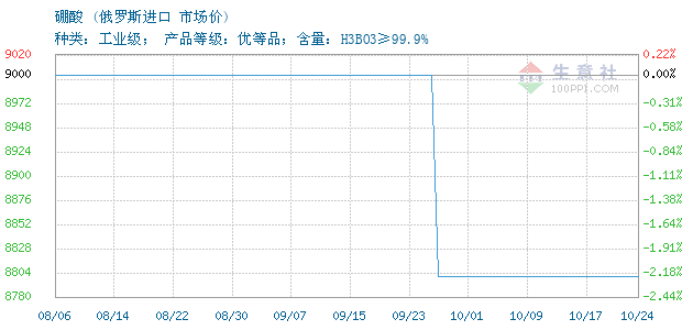 | 种类:工业级; 产品等级:优等品;含量:H3BO3≥99.9% 附加说明:99.9含量 |