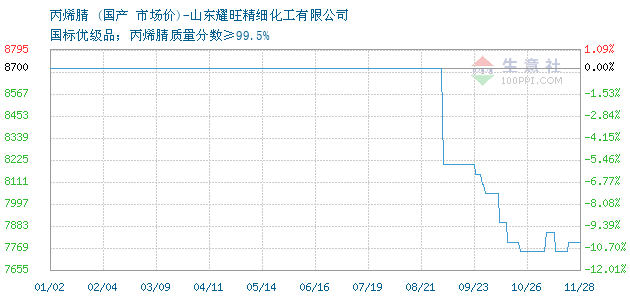| 国标优级品;丙烯腈质量分数≥99.5% 附加说明:散水出厂价 |