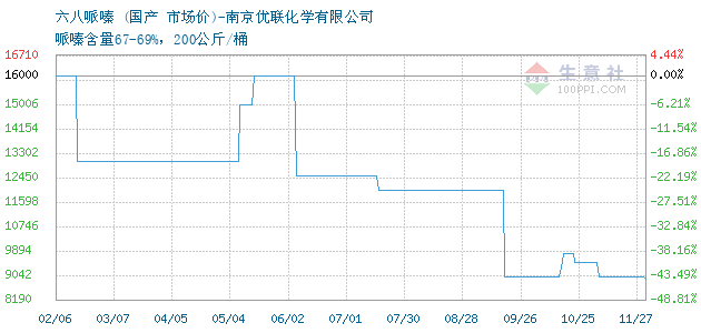 | 哌嗪含量67-69%,200公斤/桶 附加说明: |
