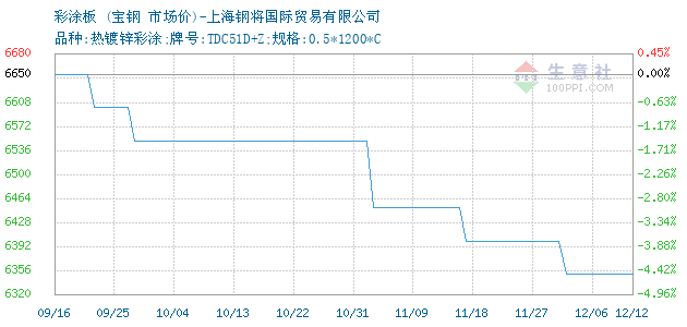 | 品种:热镀锌彩涂;牌号:TDC51D+Z;规格:0.5*1200*C 附加说明: |