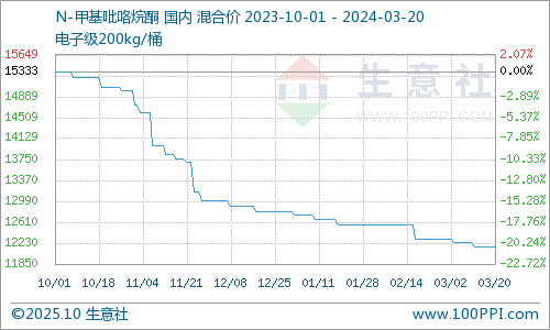 20日,华东地区NMP市场散水主流价格12000-12200元/吨。下游跟进缓慢,需求较差。成本面疲软整理运行,NMP市场承压,上游报价随行就市。
