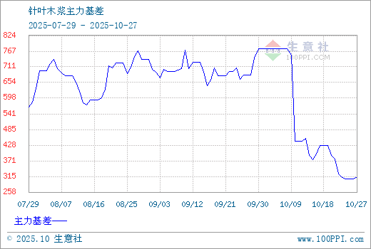 注: 1、从2025-07-29 至 2025-10-27期间,纸浆主力基差最大值为777.33,最小值为306.00。