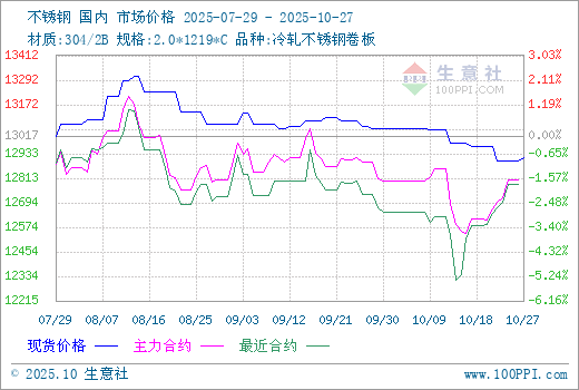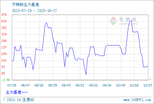 注: 1、从2025-07-29 至 2025-10-27期间,不锈钢主力基差最大值为492.50,最小值为37.50。