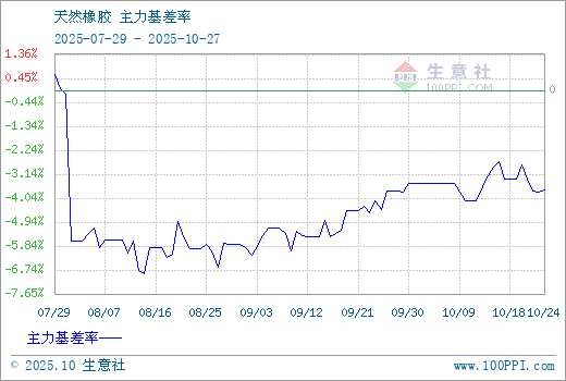 注: 1、截至 2025-10-24,天然橡胶 180日平均基差率为-2.90%,90日平均基差率为-4.67%。