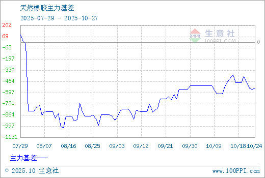 注: 1、从2025-07-29 至 2025-10-27期间,天然橡胶主力基差最大值为91.67,最小值为-1020.00。